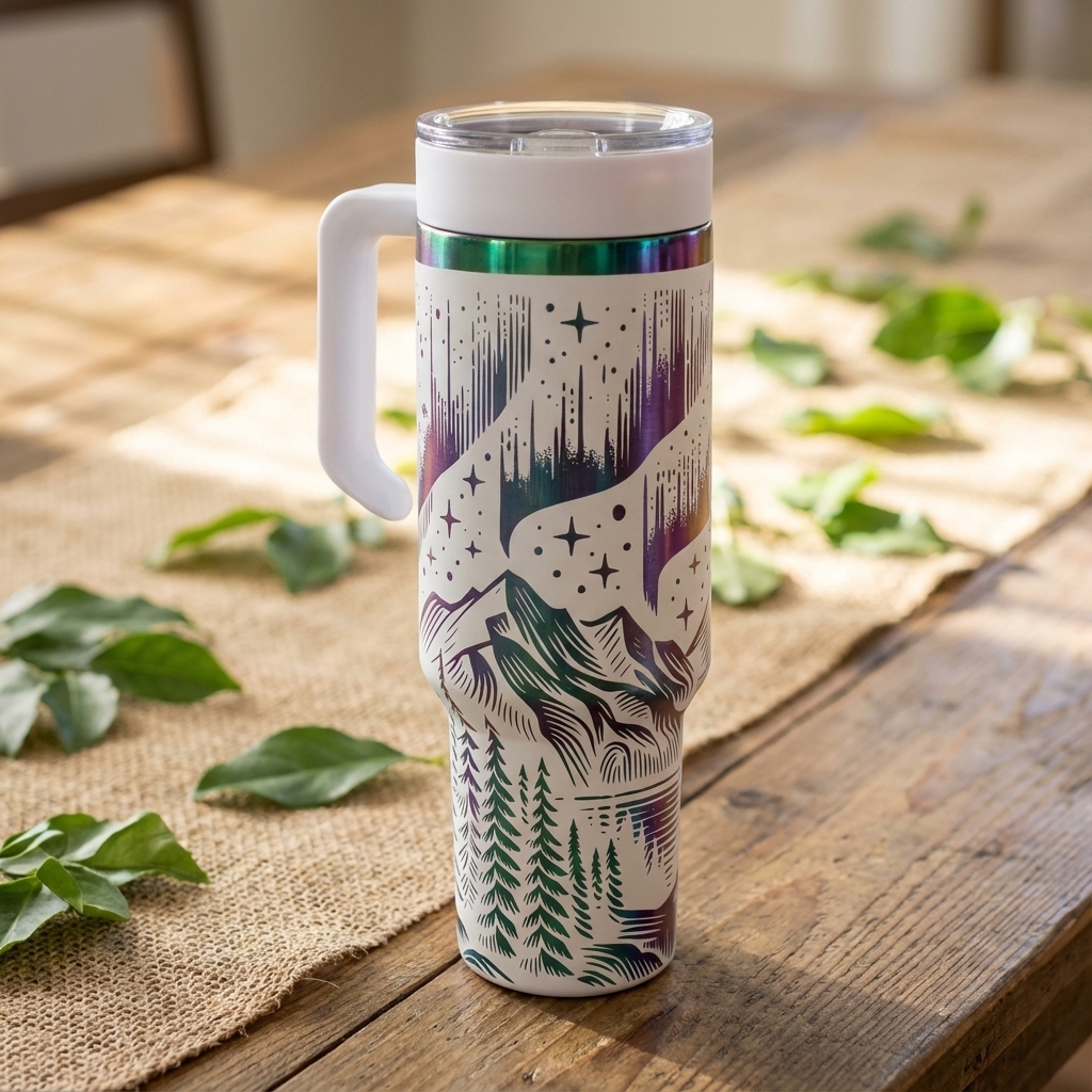 Durable tumblers personalized with intricate laser designs for everyday use.