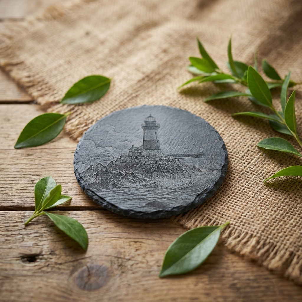 Durable slate coasters personalized with elegant designs to complement your décor.