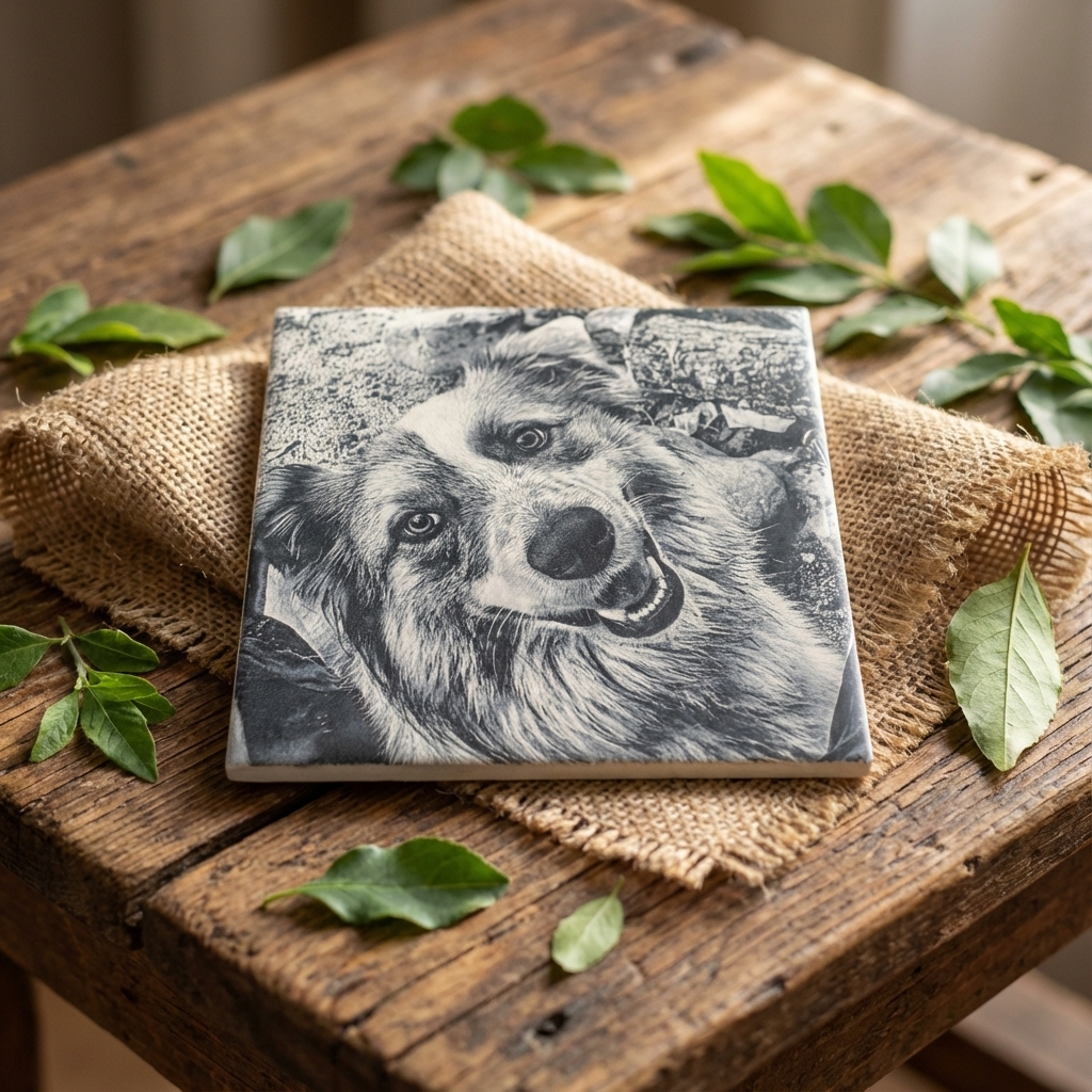 Explore our gallery featuring ceramic tiles, tumblers, coasters, and unique wooden engravings.